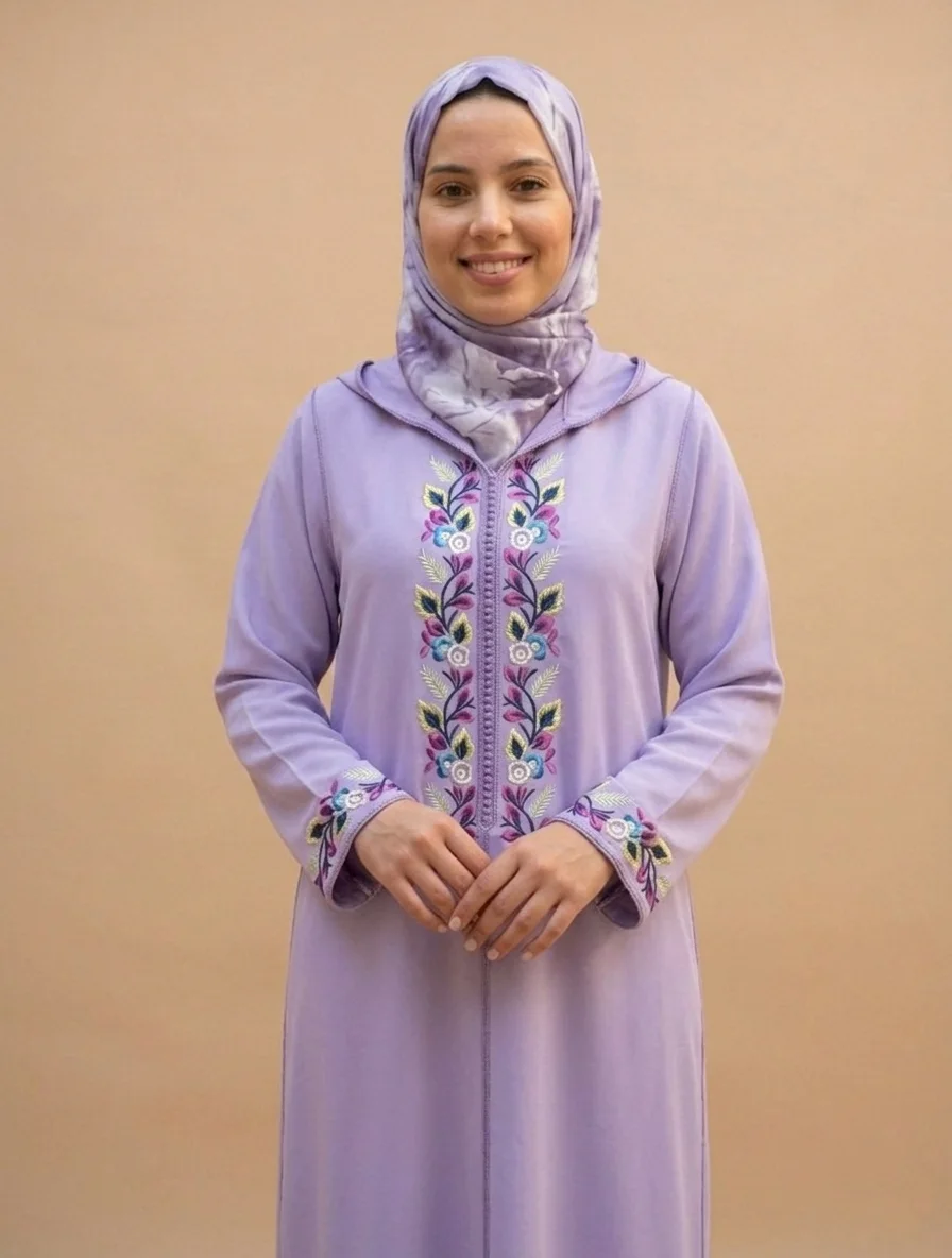 جلابة نسائية أنيقة باللون الأزرق – مزيج مثالي بين الأصالة والراحة