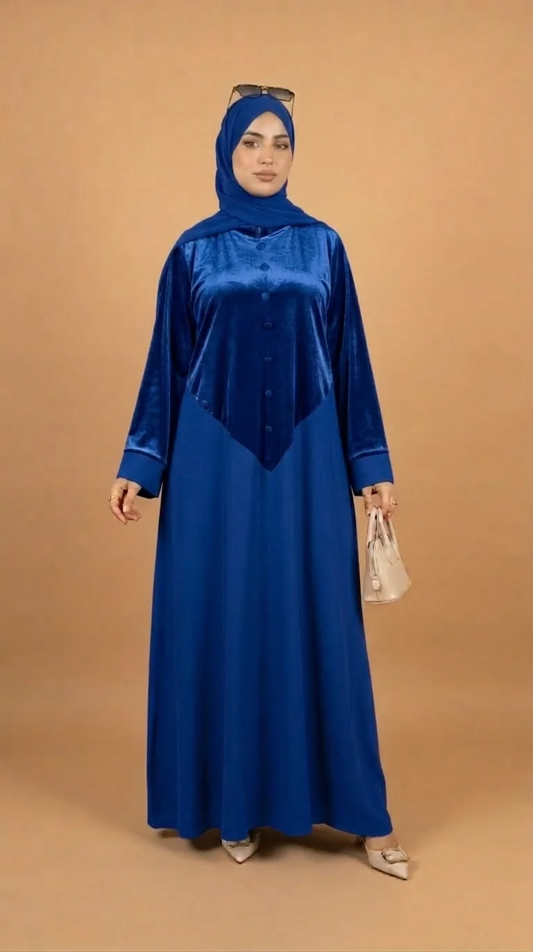 جلابة نسائية أنيقة باللون الأزرق – مزيج مثالي بين الأصالة والراحة